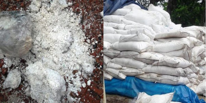 ঈশ্বরদীর পাকশী নর্থবেঙ্গল পেপার মিলের খোলা মাঠে পাঁচ বছর ধরে ফেলে রাখা প্রায় চার হাজার ৩০০ মে.টন ইউরিয়া সারের অর্ধেক
